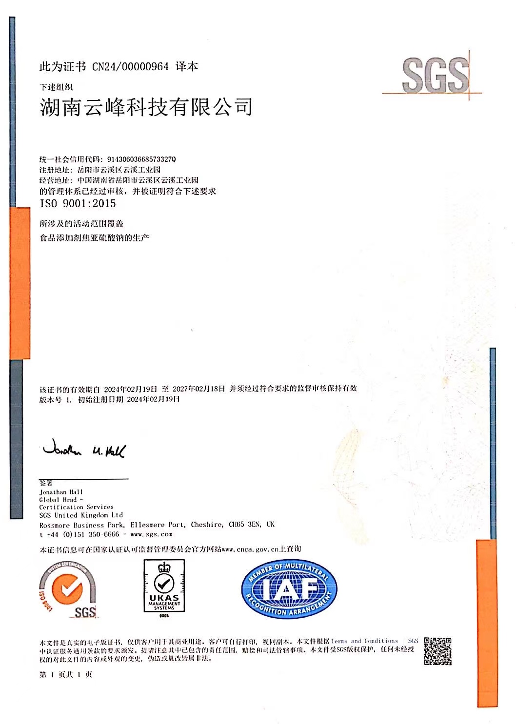 湖南云峰科技有限公司(以下簡稱云峰科技),是由長沙湘岳化工責任有限公司全額投資以生產(chǎn)焦亞硫酸鈉、亞硫酸鈉等亞硫酸鹽為主營業(yè)務(wù)的高科技企業(yè),具有六十多年的生產(chǎn)歷史,同時也是焦亞硫酸鈉的國家標準制定參與者。在行業(yè)內(nèi)具有很大的影響力。現(xiàn)有職工八十余人。具有優(yōu)良的經(jīng)營管理團隊和成熟的生產(chǎn)技術(shù)隊伍。由多位在化學、化工行業(yè)擁有豐富工作經(jīng)驗的工程師及技術(shù)員團隊組建而成,致力于亞硫酸鹽產(chǎn)品的研發(fā)、生產(chǎn)和銷售。2020年公司對生產(chǎn)設(shè)備、安環(huán)設(shè)施及工業(yè)技術(shù)等進行了大規(guī)模的升級改造,使焦亞硫酸鈉和亞硫酸鈉的生產(chǎn)工藝更加先進,技術(shù)更成熟,產(chǎn)品質(zhì)量更優(yōu)良。無論在生產(chǎn)工藝、設(shè)備、產(chǎn)品質(zhì)量、清潔生產(chǎn)、節(jié)能環(huán)保和員工素質(zhì)方面,均處于行業(yè)領(lǐng)先地位。公司的主導(dǎo)產(chǎn)品“云峰”牌焦亞硫酸鈉,歷史悠久,深受國內(nèi)外客戶信賴,產(chǎn)品遠銷東南亞、歐美、非洲、南美洲等20多個國家和地區(qū),產(chǎn)品供不應(yīng)求。